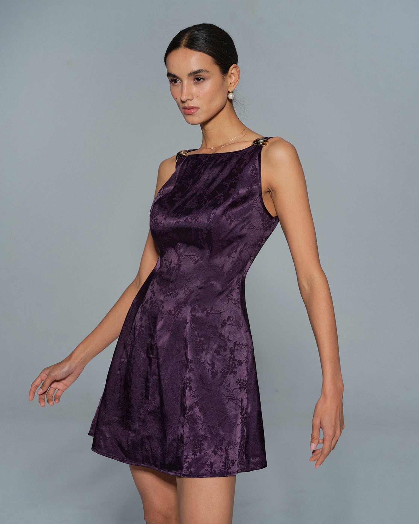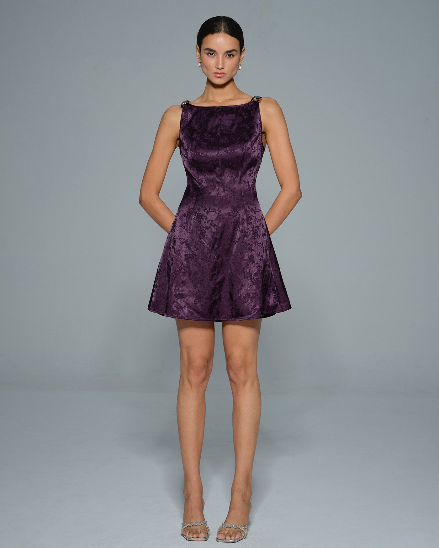 Purple Sleeveless Floral Mini Dress