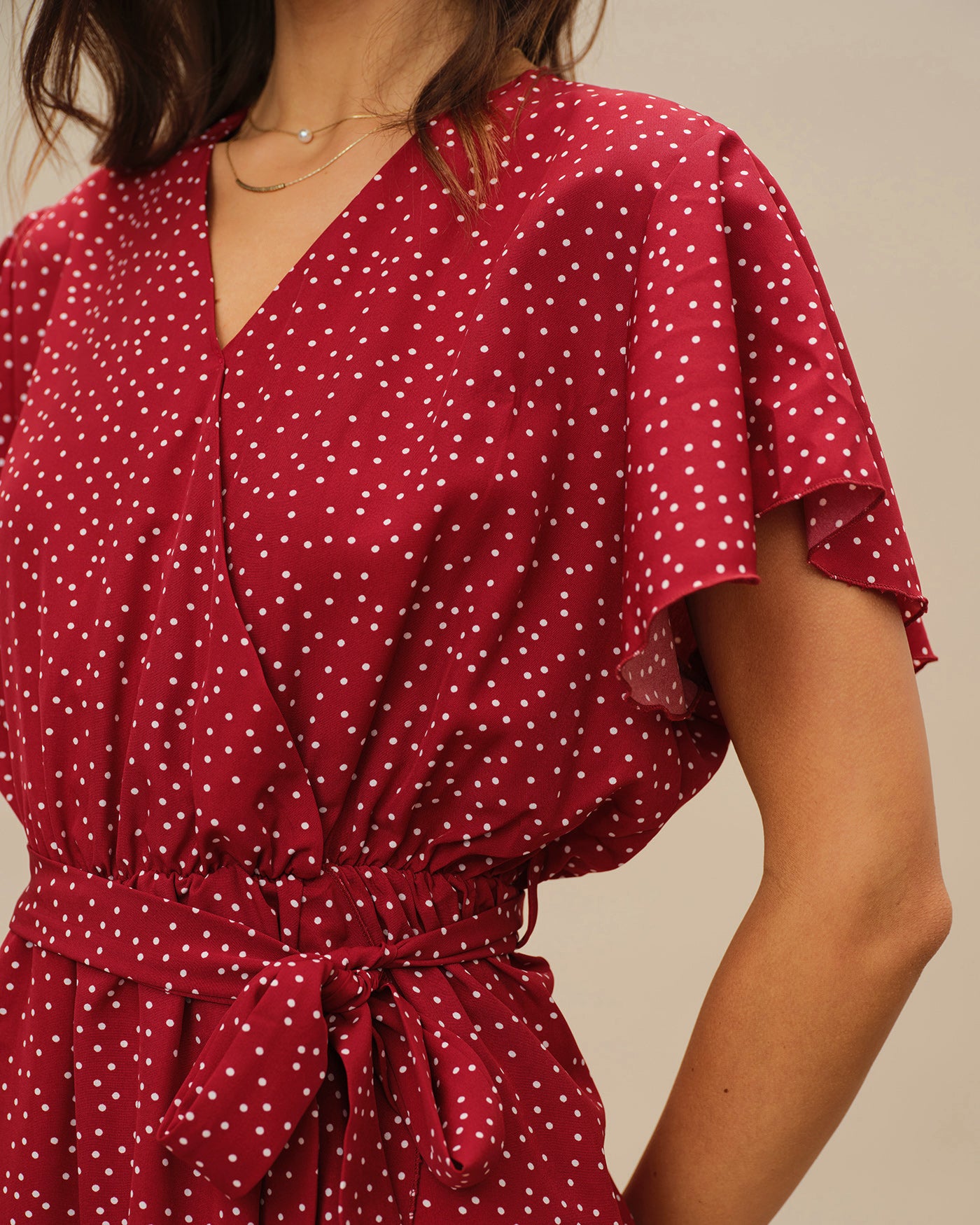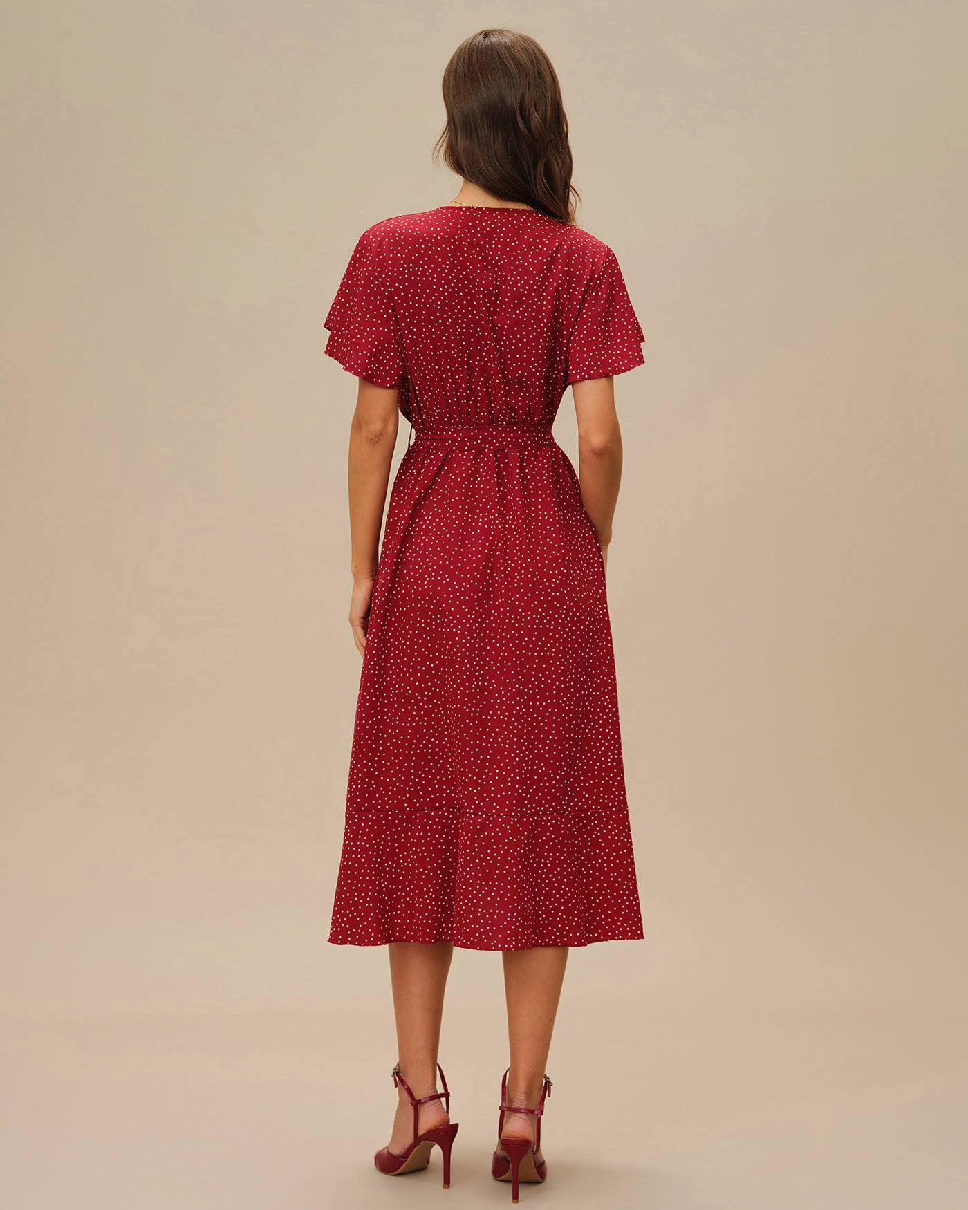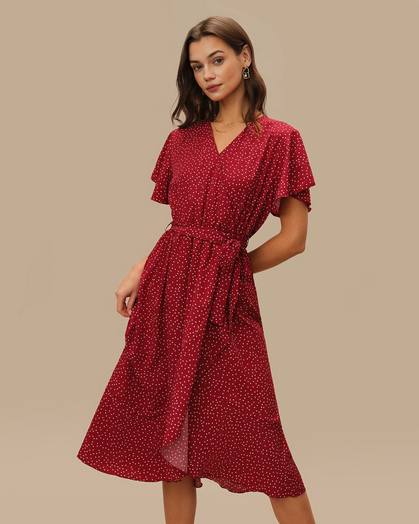 Red Butterfly Sleeve Polka Dot Midi Dress