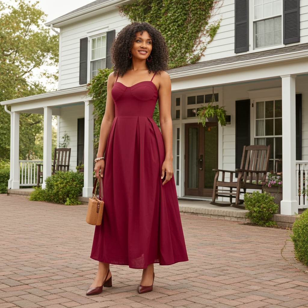 Great dress to wear in summer, breathable, I love the sweetheart neckline. Hides the tummy area. It’s stretchy on the back so you can size down if needed. Has strings to the back to tie too. I’m 5’3’, so the dress is a bit long, but I like it! Now the cons: the zipper on the side is a little tough to get on, the dress can ride up at times at the rope area, it’s a bit sheer but there is a lining. The straps are a little thin, I’m worried it will tear one day. The breast cup thing on the front doesn’t really fit me, especially with a bra on, it looked weird. The girls in the picture were thin, it looked good on them, not as much for me. I wish that wasn’t added. The neckline does fold over for me. I would still wear it, I still like the dress very much,