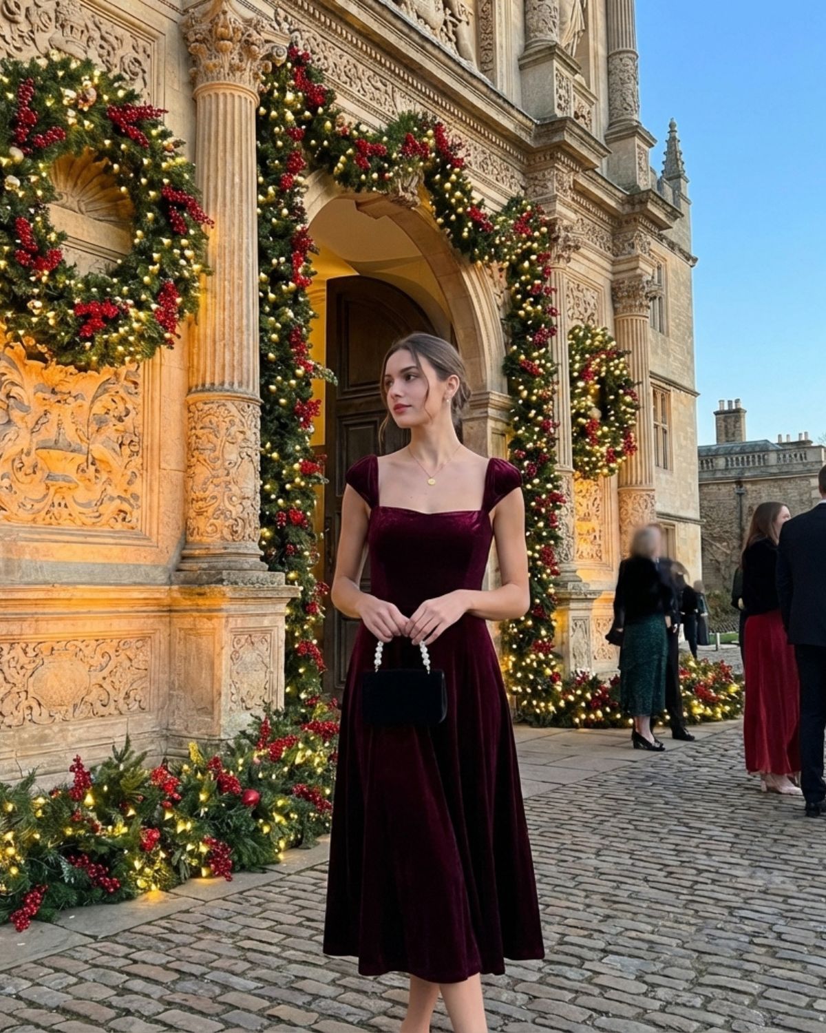 The red velour is rich and plush—smooth as butter, no cheap or scratchy texture at all! The sweetheart neckline is so romantic, framing my collarbone perfectly without gaping. As a petite girl, the midi length hits right below my knees (ideal with block heels) and doesn’t swallow my frame.