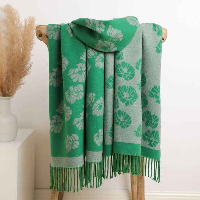 RHchic-The Floral Jacquard Wool Throw Blanket