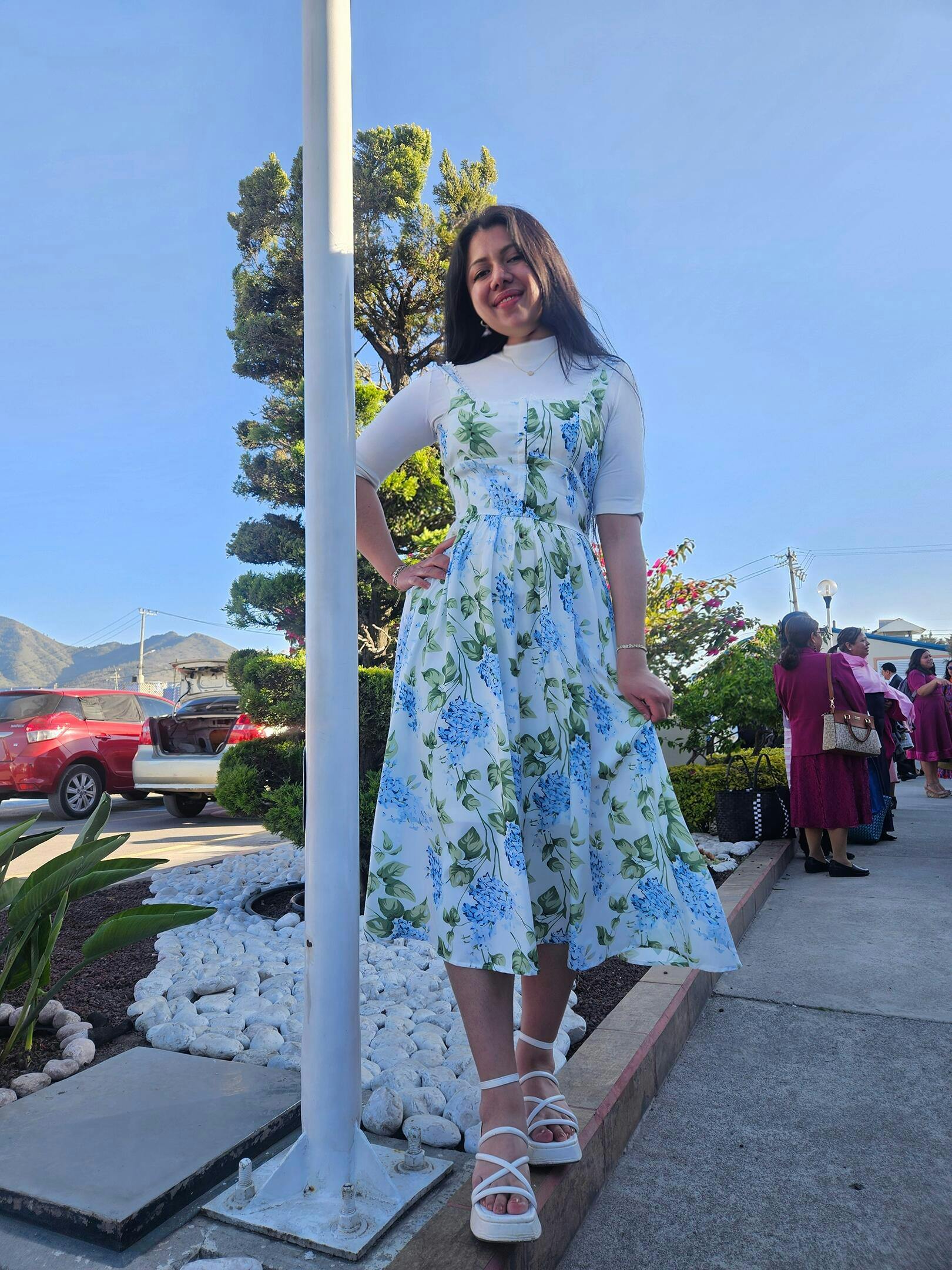 The White Square Neck Floral A-Line Midi Dress