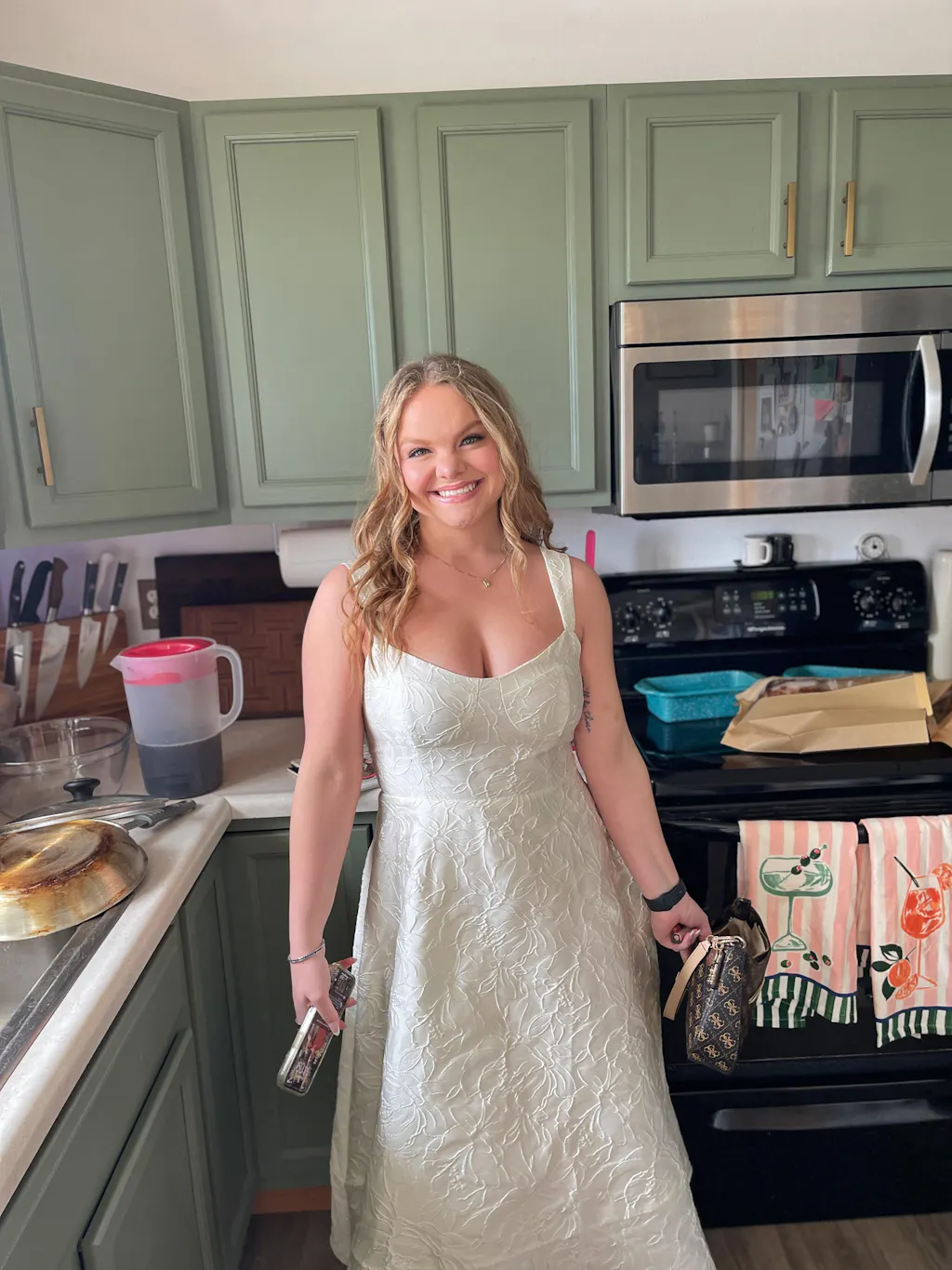 I wore this dress for my engagement photo shoot, and omg, it was so perfect! I love the texture and how it fits. Got so many compliments!