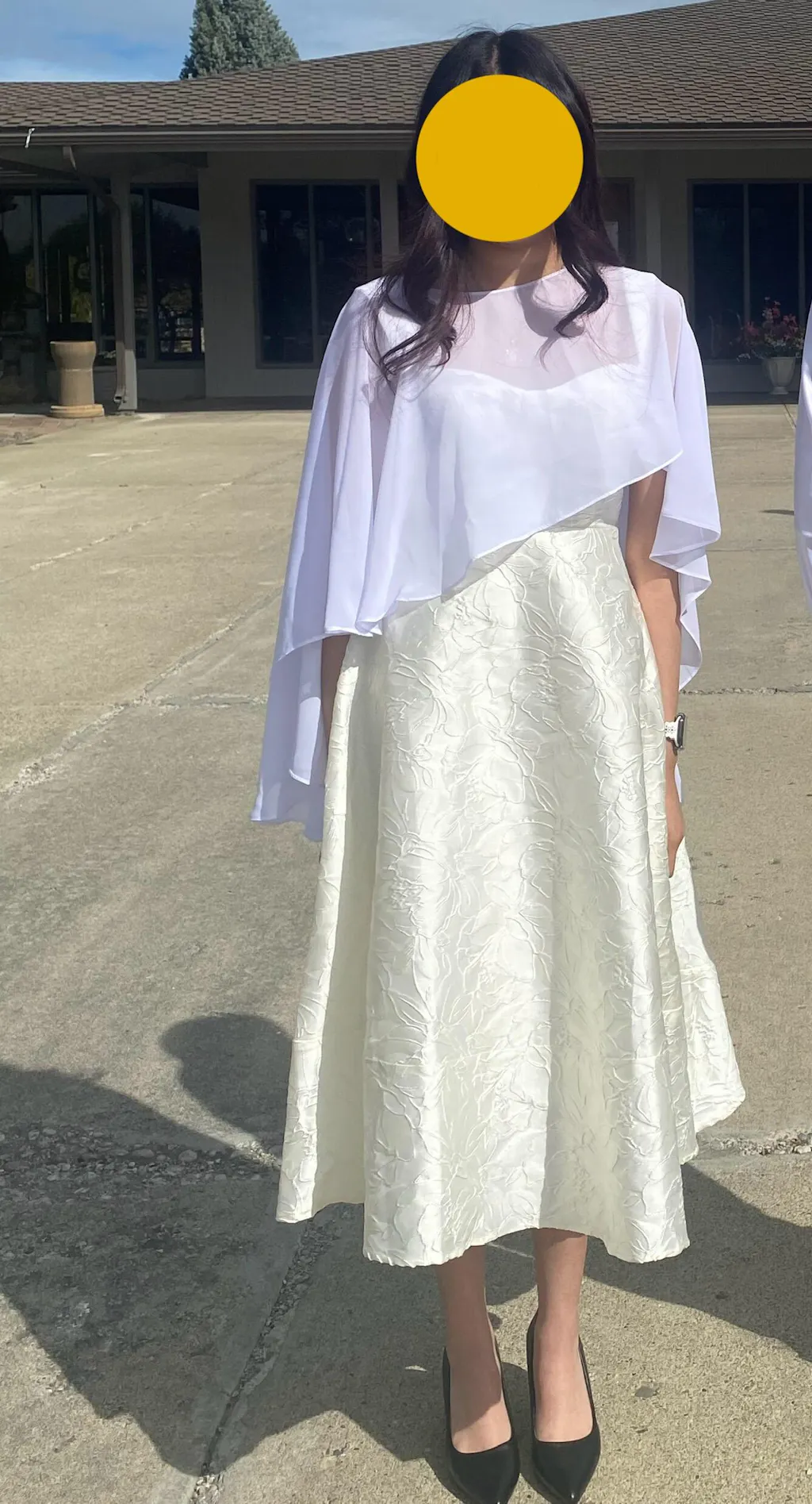 I wore this dress for my confirmation and it war literally perfect. I felt so pretty and the quality is really good. The straps were a line loose on me but i overall works recommend and would repurchase. I am wearing a shawl over the dress for a bit more modesty and forgot to take some pictures without it. Excuse how awkward I seem.