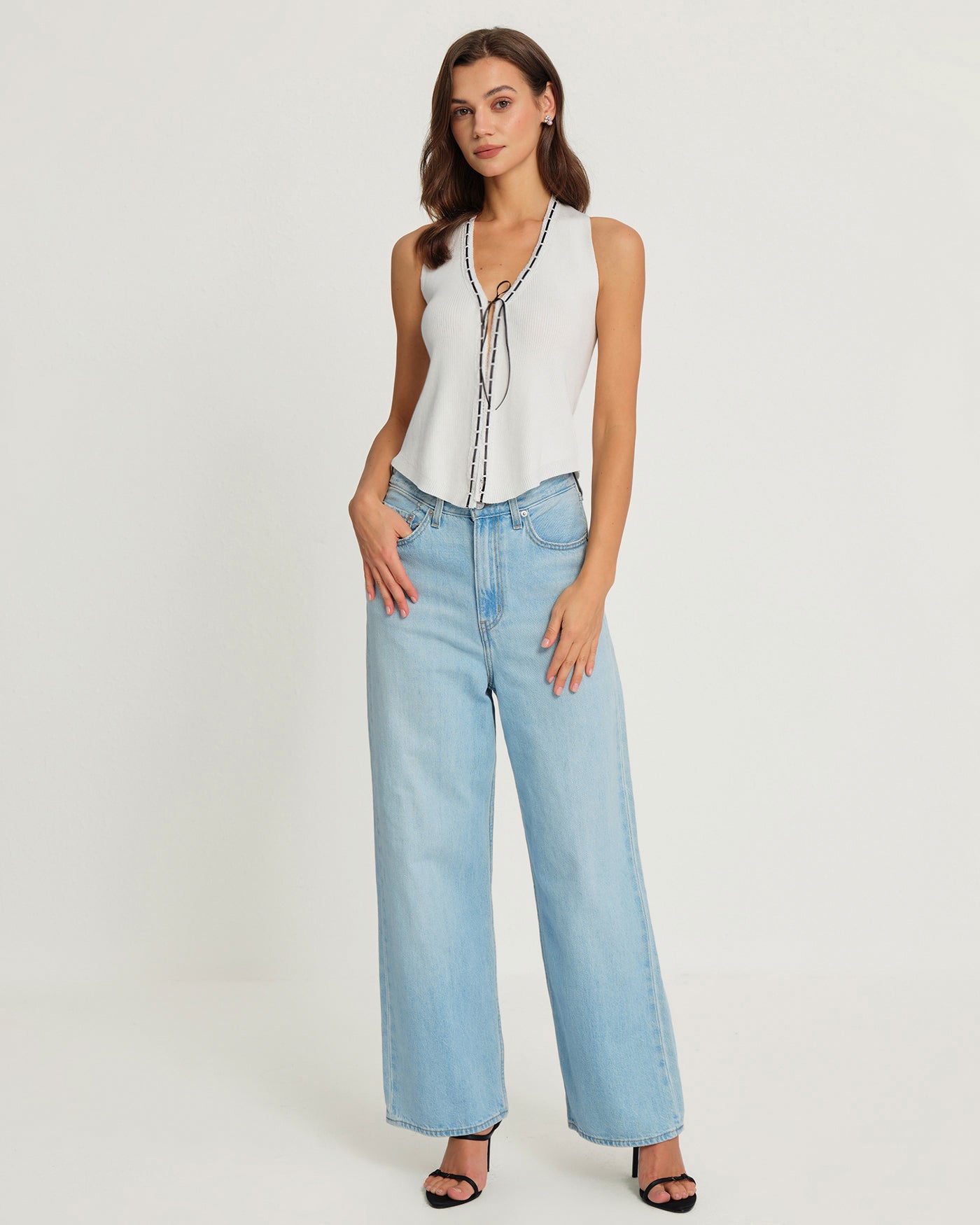 White Halter Drawstring Vest