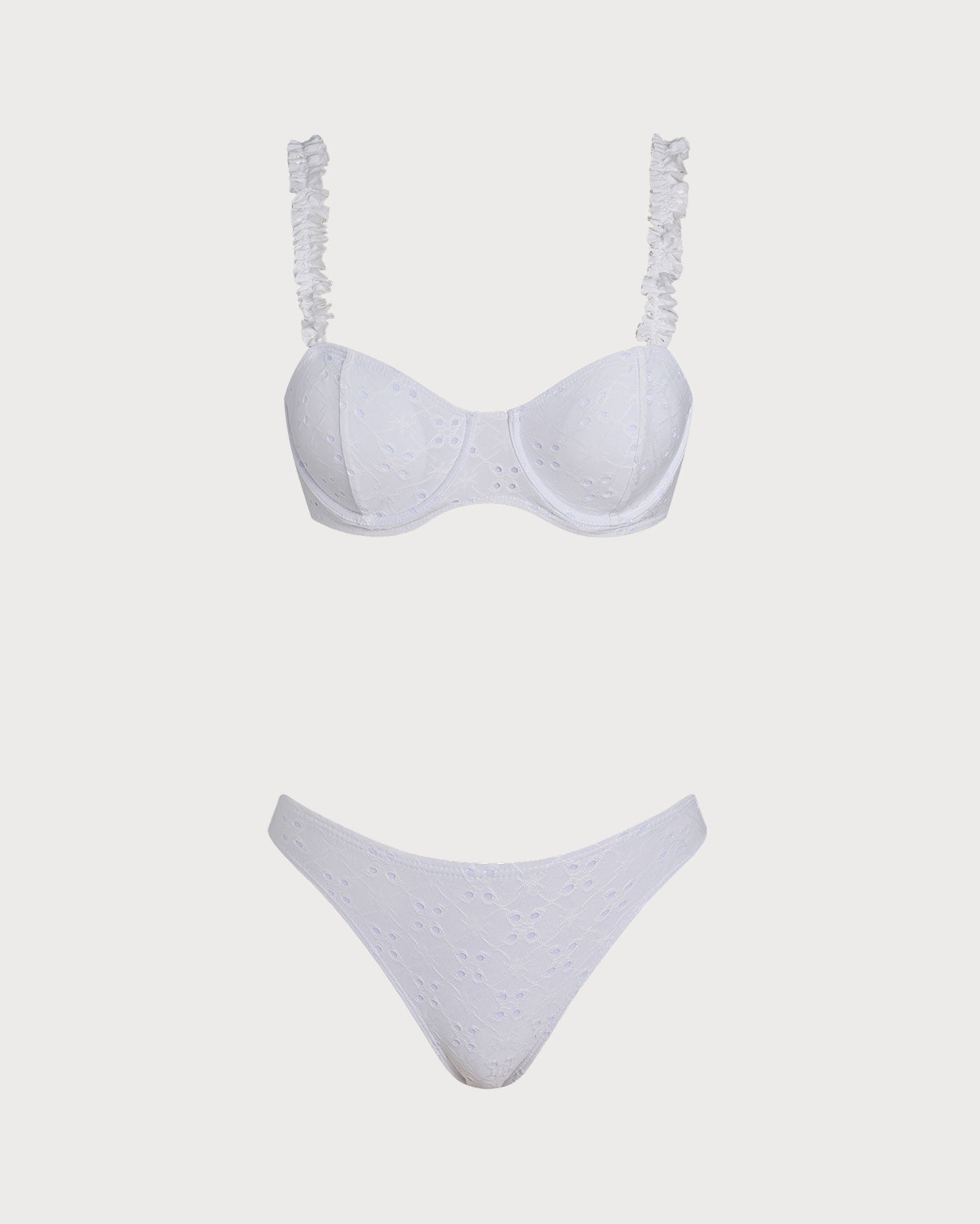 White Jacquard Underwire Drawstring Bikini Set