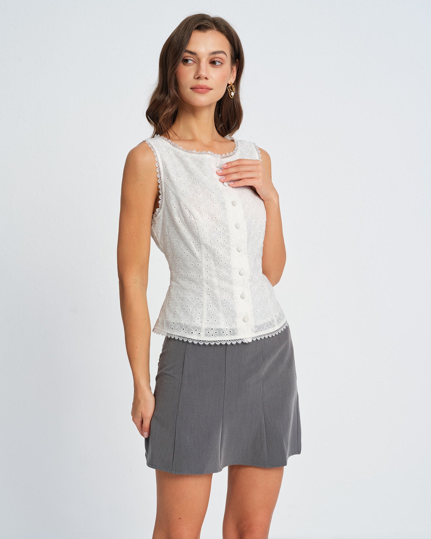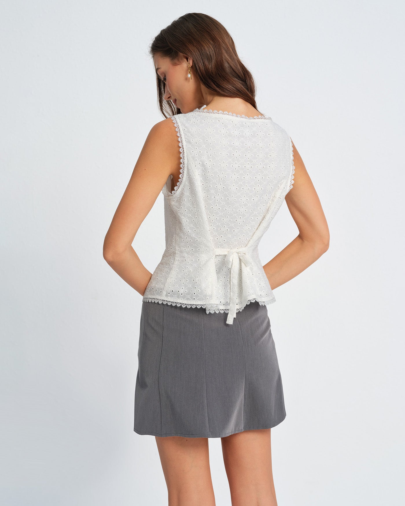 White Single Breasted Lace Vest