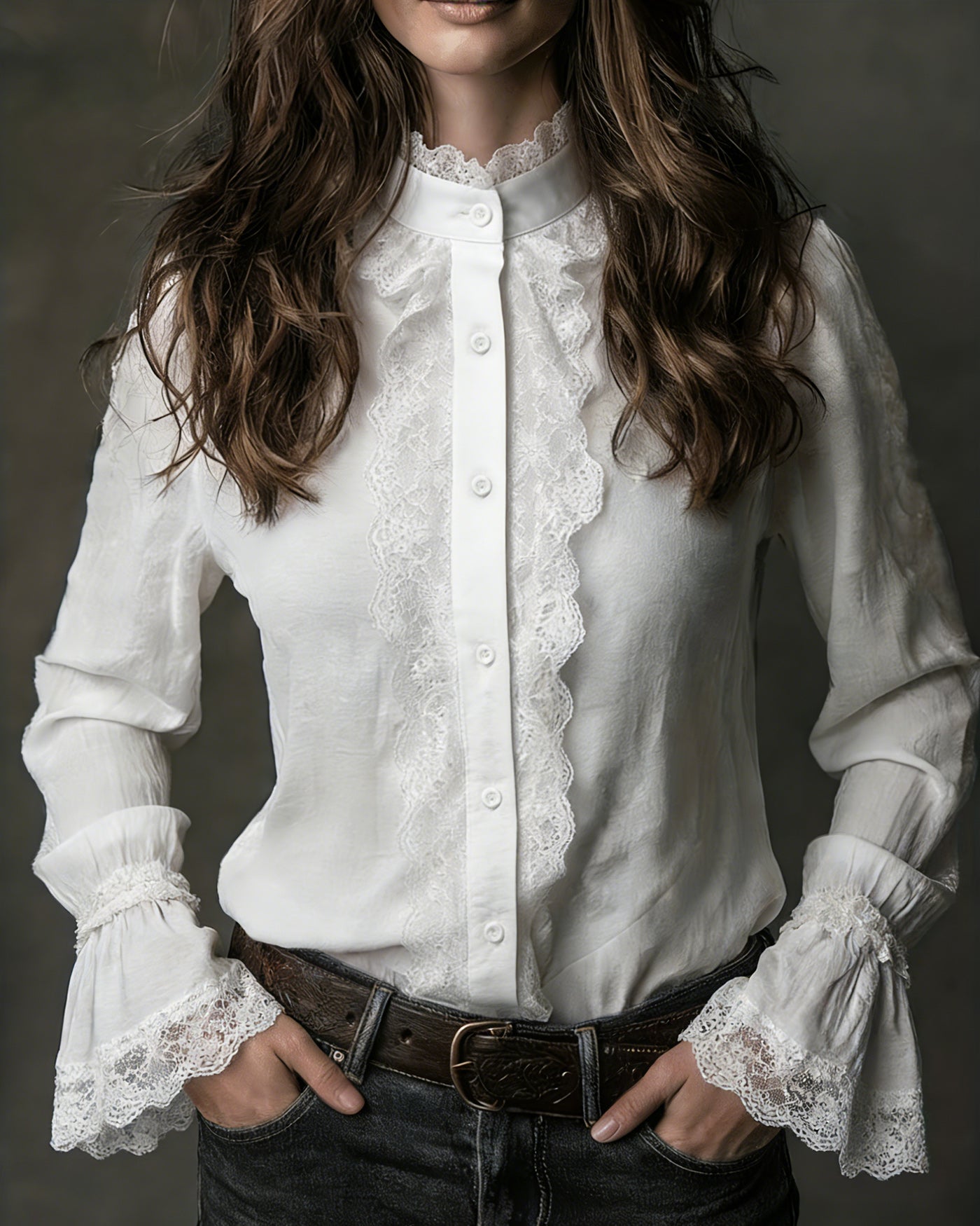 White Turtle Poet Sleeve Lace Shirt