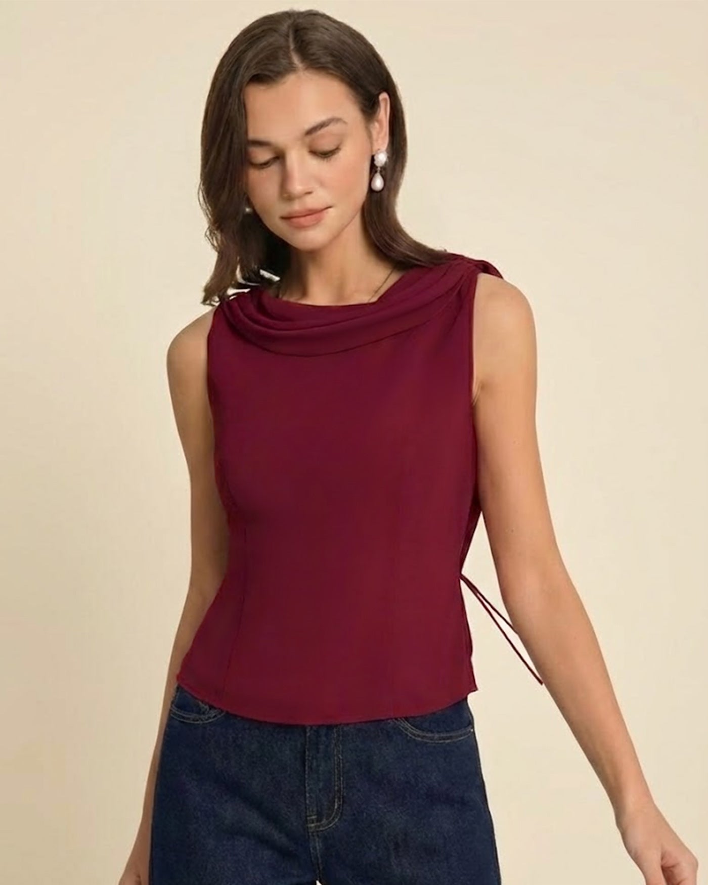 Wine Red Boat Neck Tank Top