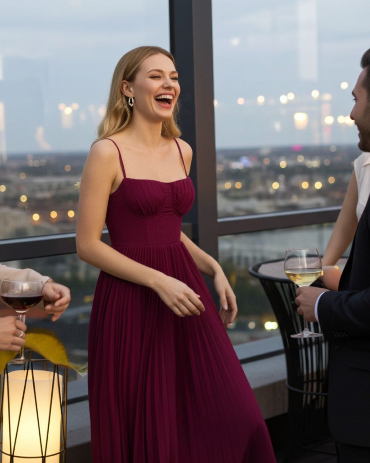 I bought this dress for my girlfriend, and it’s now her go-to for our anniversary dates! The wine red is stunning—warm and luxurious—and the sweetheart neckline adds a feminine touch without being over-the-top.