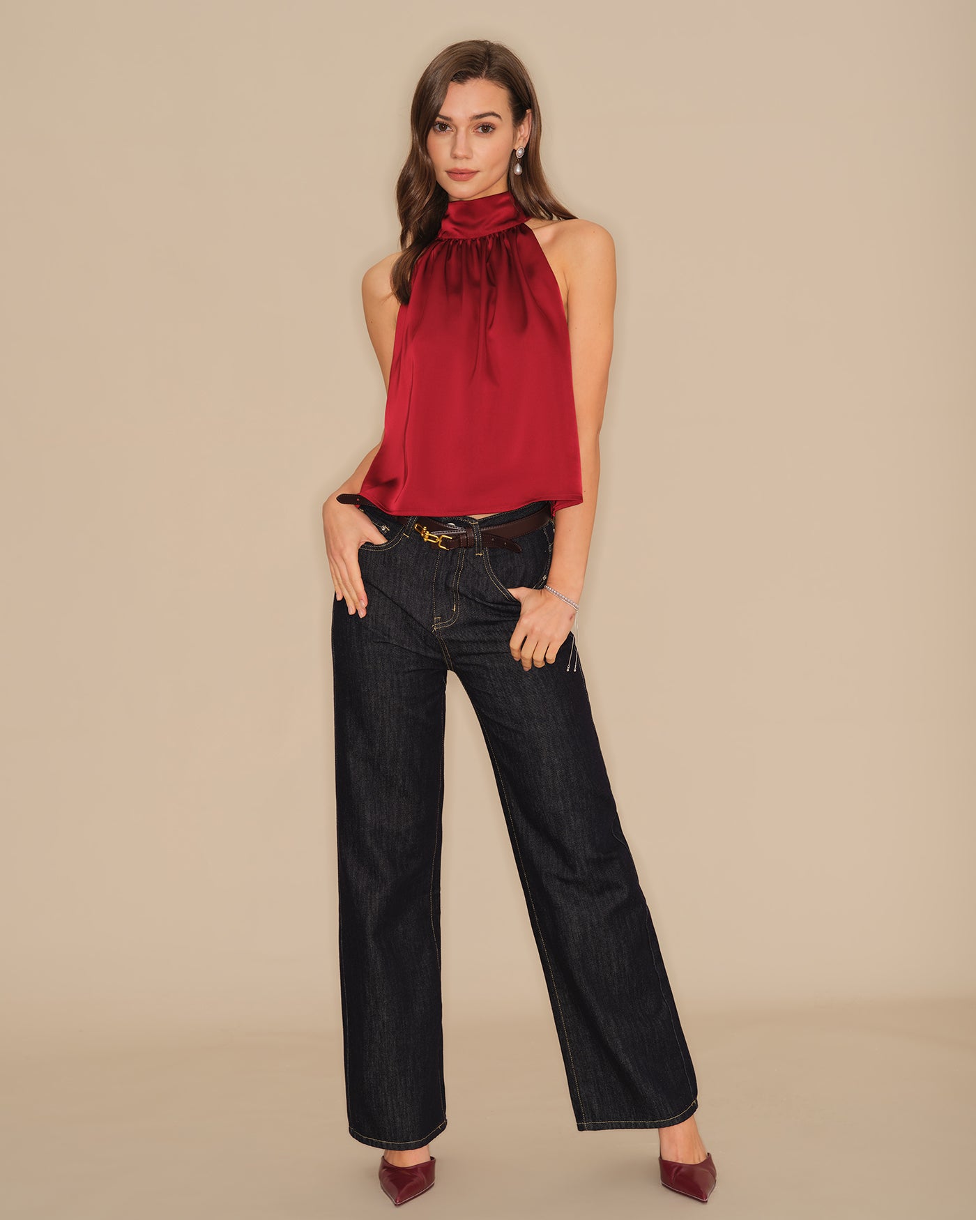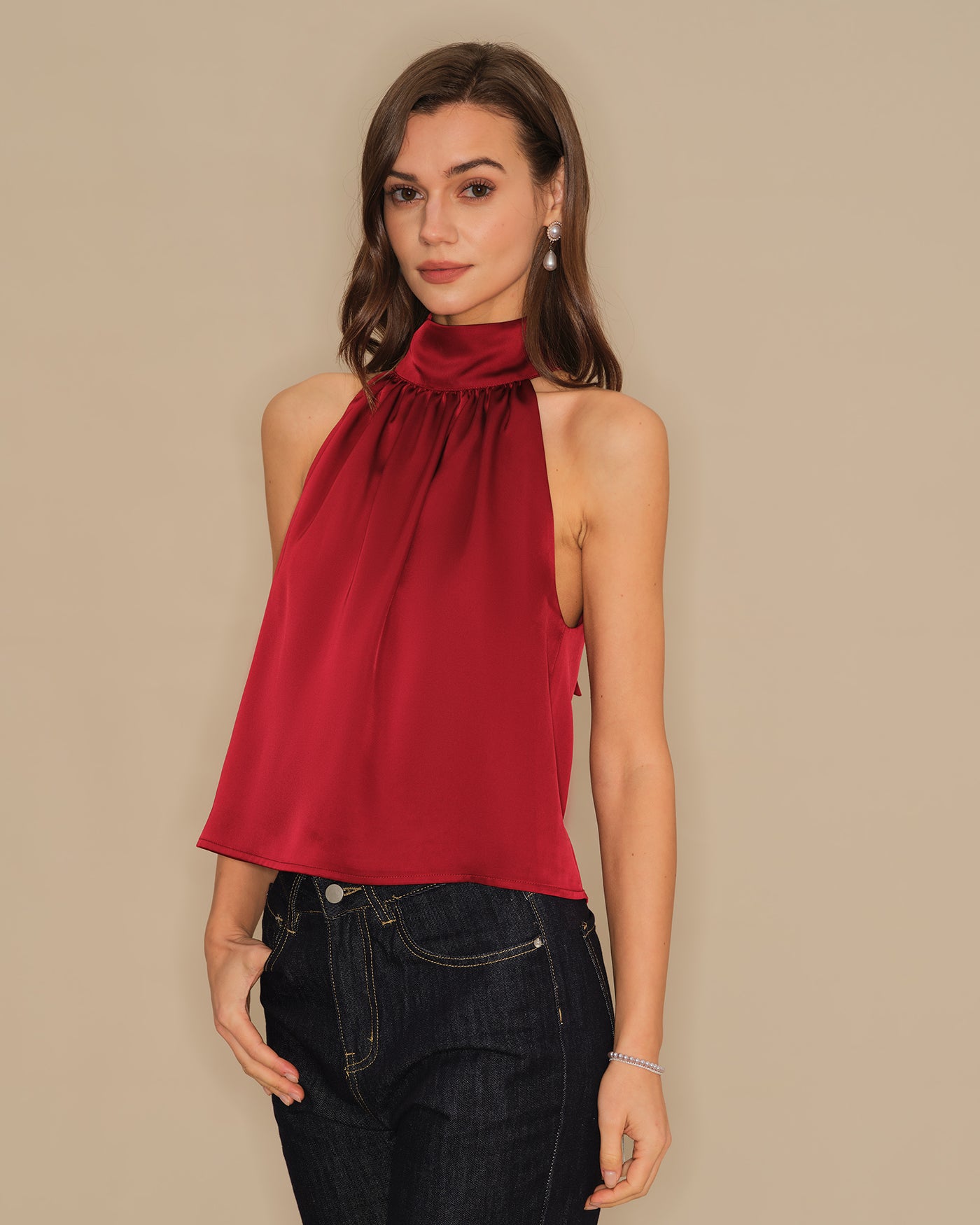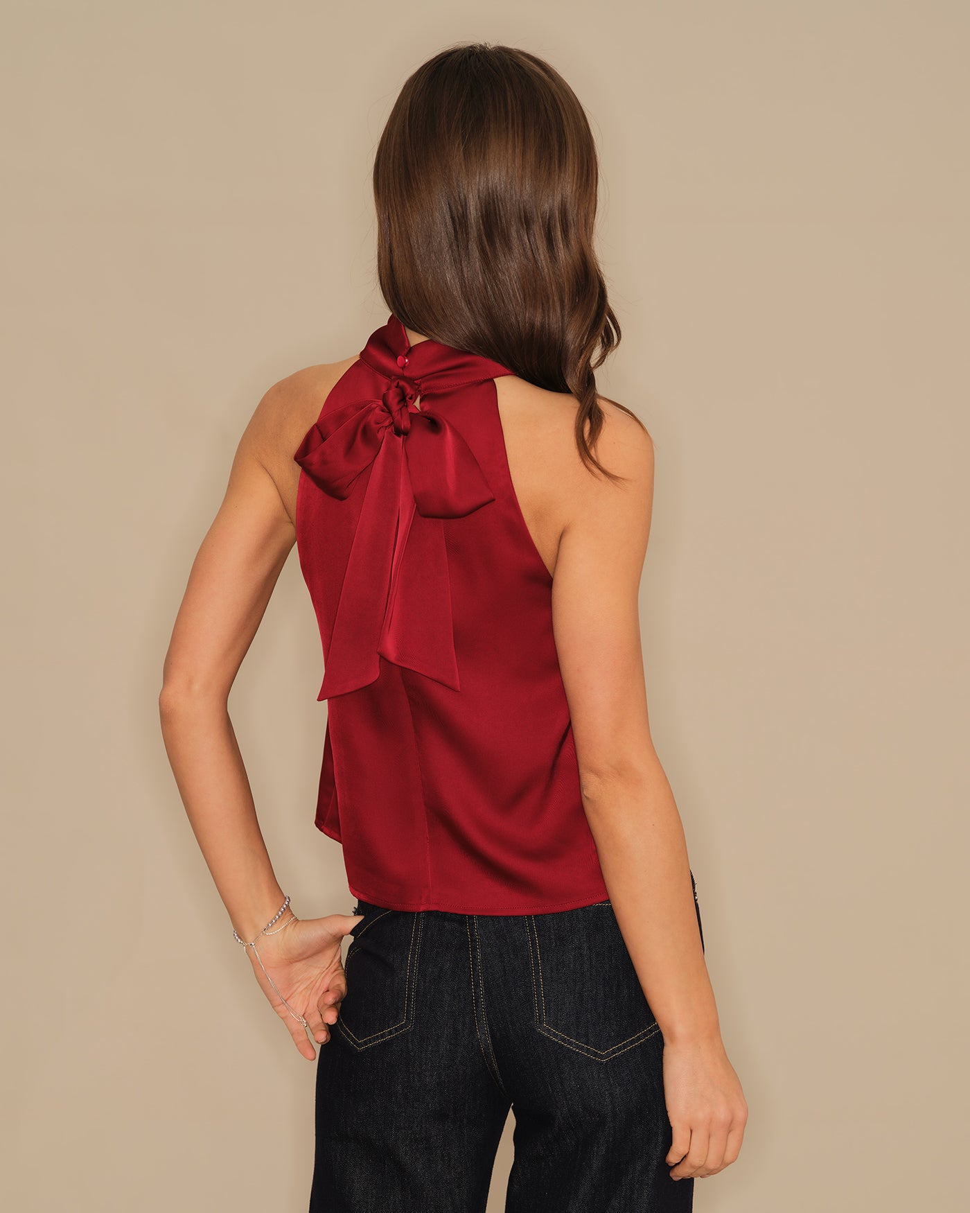 Wine Red Turtle Bowknot Satin Tank Top