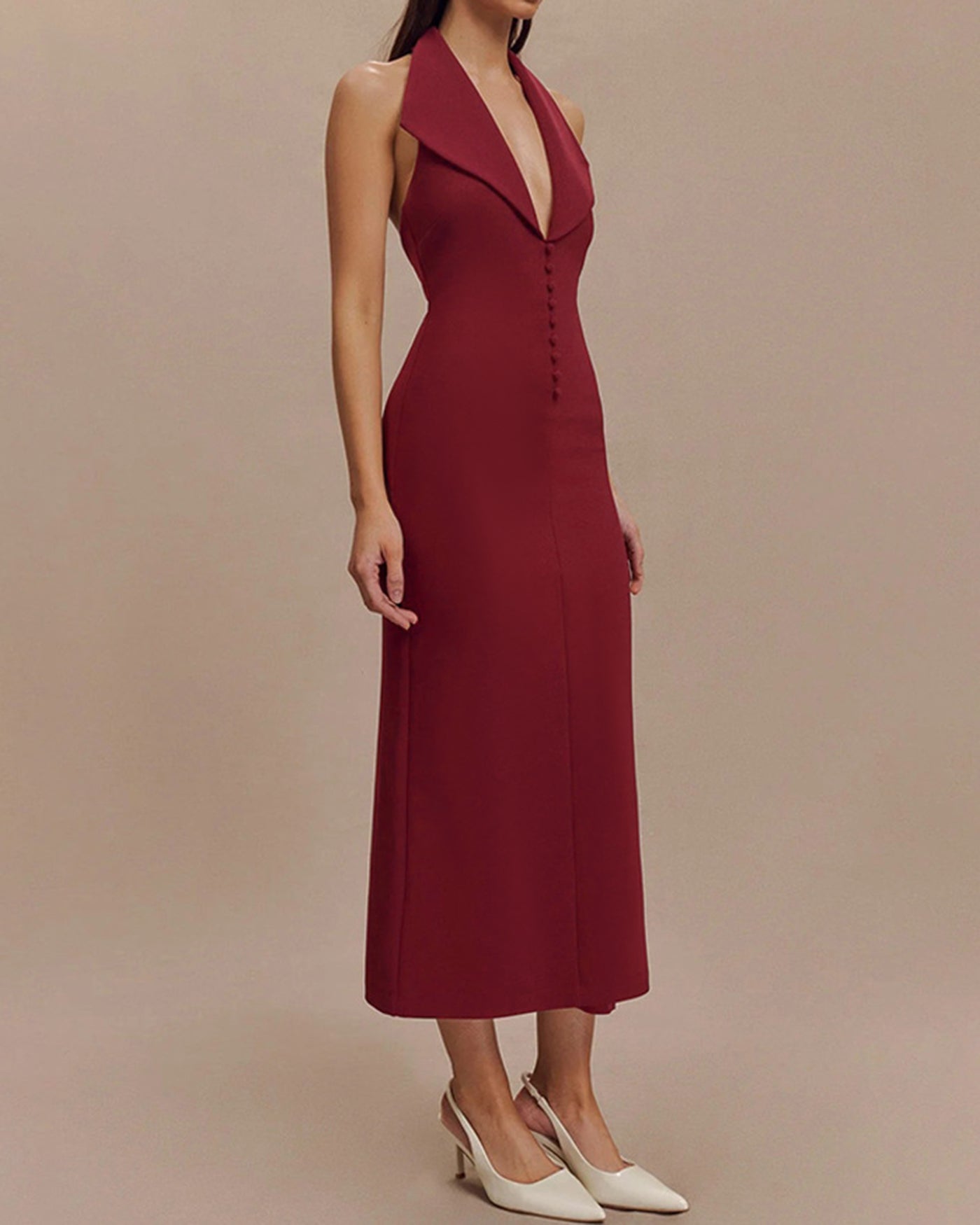 Wine Red V Neck Maxi Dress